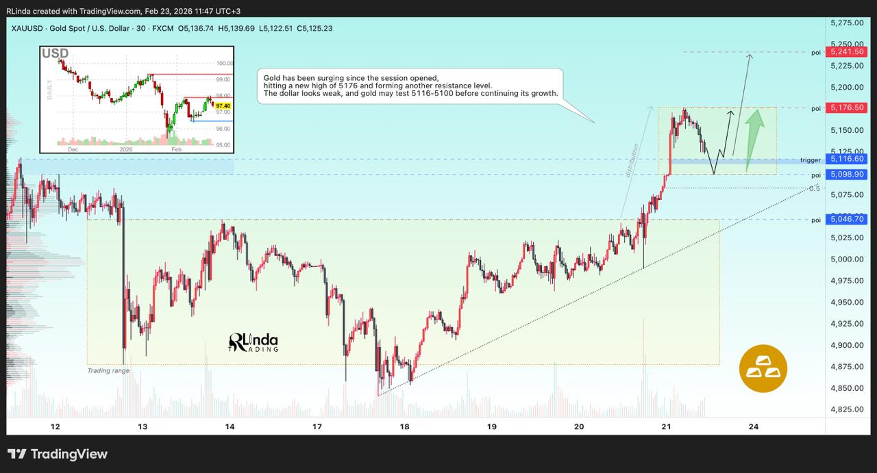 GOLD continues its steady growth, adding 2% on Friday and another 1% on Monday, reaching new levels of 5176. The driver is the flight to safe-haven assets amid tariff uncertainty and geopolitical risks